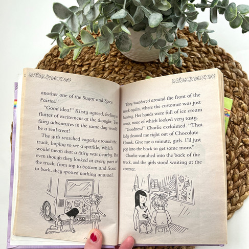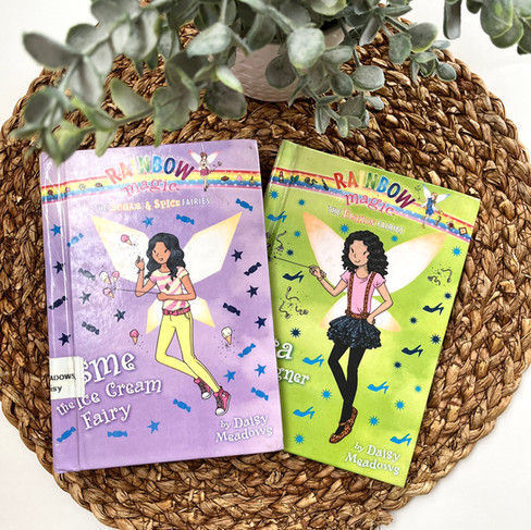 Rainbow Magic Fairy series takes Kirsty and Rachel on fun adventures trying to help different fairies stop Jack Frost and his goblins from causing trouble in the human world. They are broken up into mini series like weather fairies, fashion fairies, animal fairies etc.